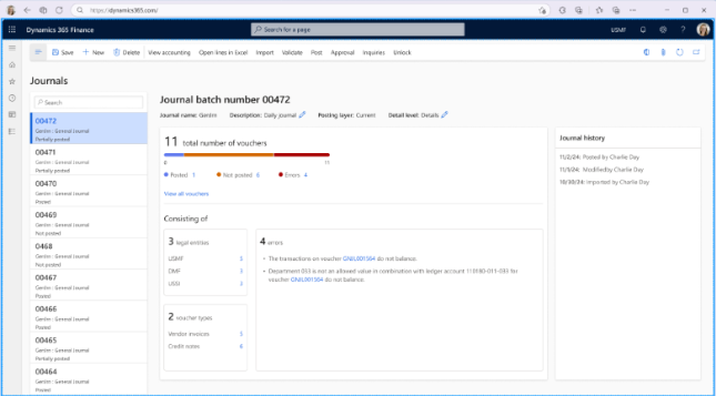 The new financial journal framework becomes the foundation for all financial journals in Dynamics 365 Finance. It significantly improves performance across the entire journal lifecycle, from import and validation to posting. Finance teams can now work with vouchers for multiple legal entities within a single journal, which is especially valuable for shared service centers and multinational organizations. The introduction of document types provides clearer lifecycle control and improved analytical insight into different transaction categories, while still allowing transactions to be prepared externally and imported through data management. Importantly, this framework is designed to evolve further, gradually reaching functional parity with classic journals while enabling more scalable and future-proof financial processes.